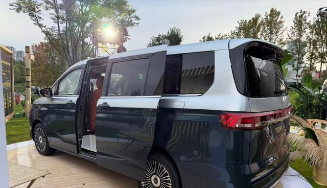 外观造型设计也就是比较流行的风格,车头前脸采用直瀑式的进气中网,这种效果在很多成熟产品上面都用过很多次了,比如长城魏牌高山,或者非常经典的广汽传祺M8等等。而车身侧面看这款车也是明显务实的作风,并没有太多的修饰,轮毂尺寸也不算很大,不过整个后排的侧滑门开合面积不错。