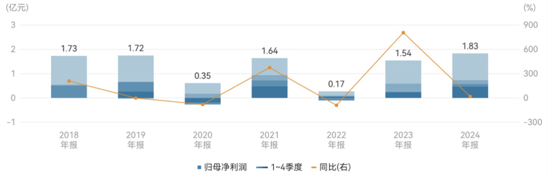 2018年至2024年嘉美包装归母净利润及同比情况