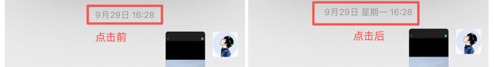 另外有网友发现,在聊天信息中点击上面的时间,现在所有信息上都会显示完整日期,就是在原有的日期中加入了星期几。