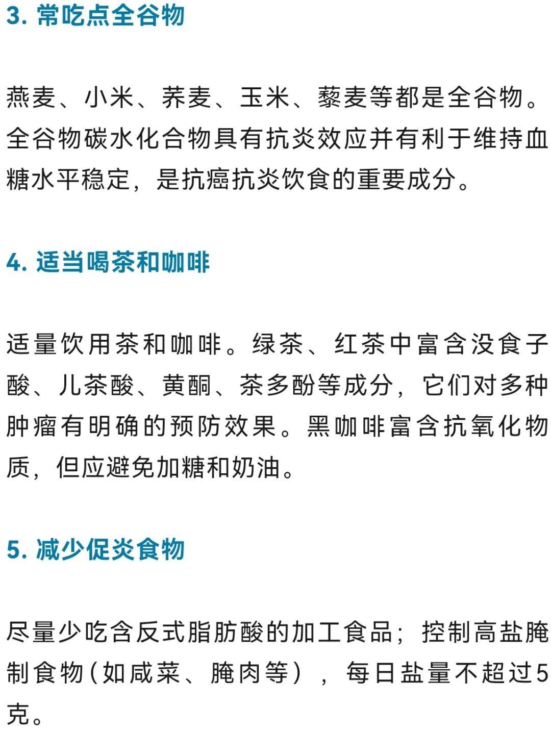 中山大学肿瘤防治中心肿瘤内科副主任医师周婷2025年在医院微信公众号刊文指出,番茄中的番茄红素、蓝莓中的花青素、西蓝花中的萝卜硫素,都是天然抗炎剂。水果和蔬菜中含有丰富的维生素和矿物质、膳食纤维、植物化合物,具有较好的抗炎活性。试着让餐盘像彩虹一样多彩。